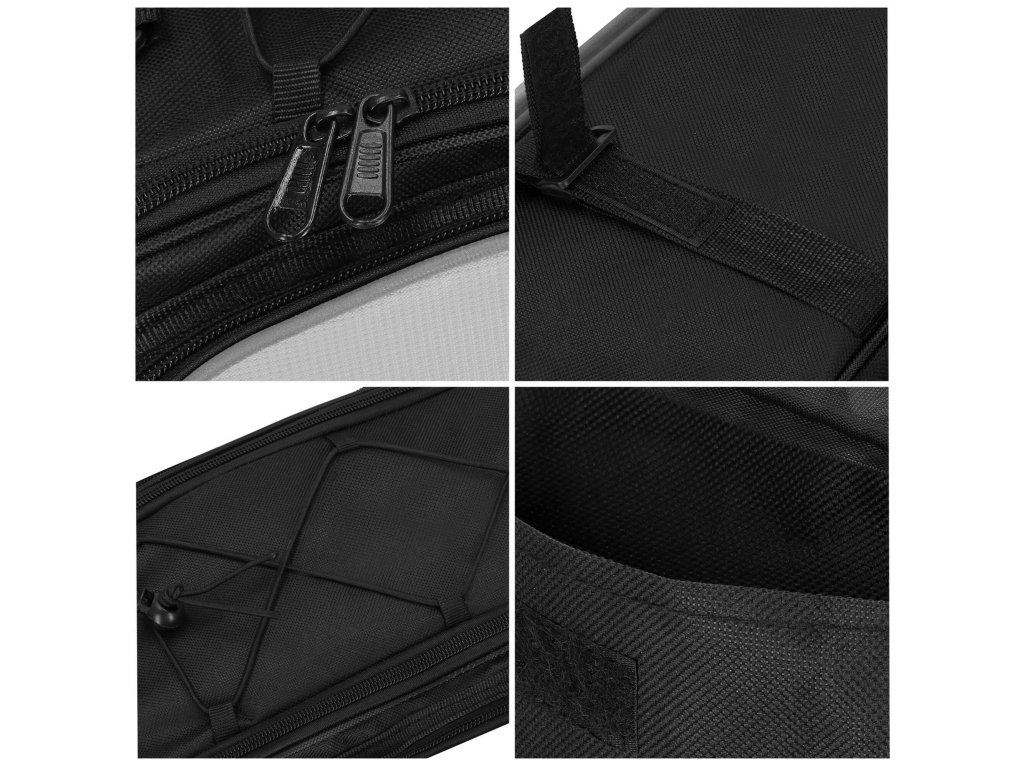 - 2 bočné vrecká / 1 hlavný priestor / 1 bočné vrecko na suchý zips