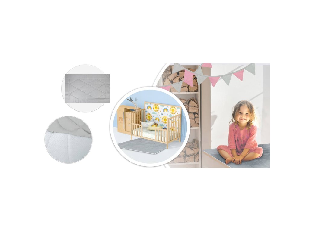 - Set vsebuje dve blazini in debelo izolacijsko podlogo s protizdrsnimi izboklinami.