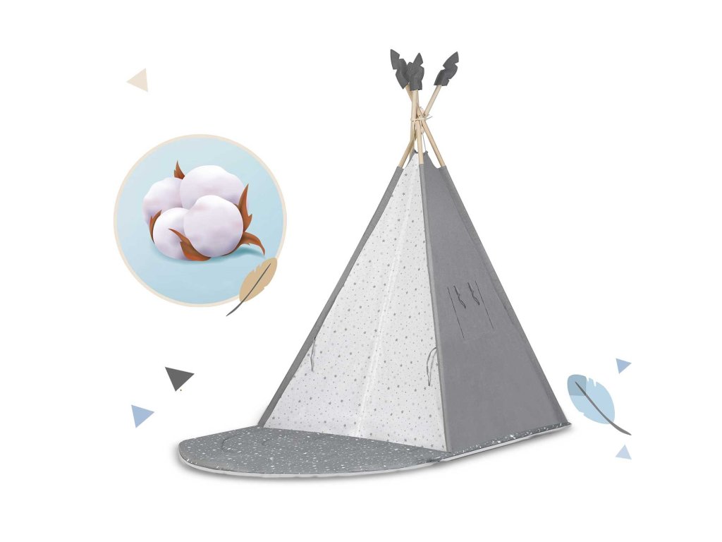 Za večjo zaščito otrok komplet teepee vključuje stabilizator. Zaradi njega vam ni treba skrbeti za svojega otroka; šotor je maksimalno varen in ga enostavno premaknete na drugo mesto.