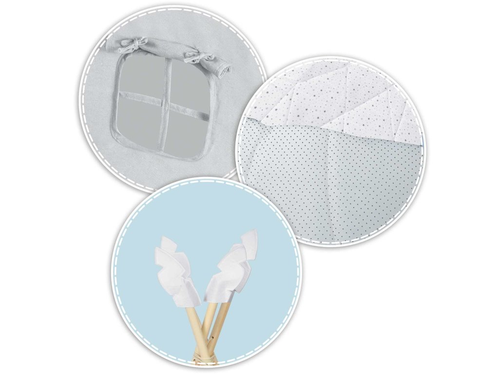 Vsak típí je dobavljen s kompletom 3 blazin vidnih na fotografiji (kvadrat, luna in zvezda)!