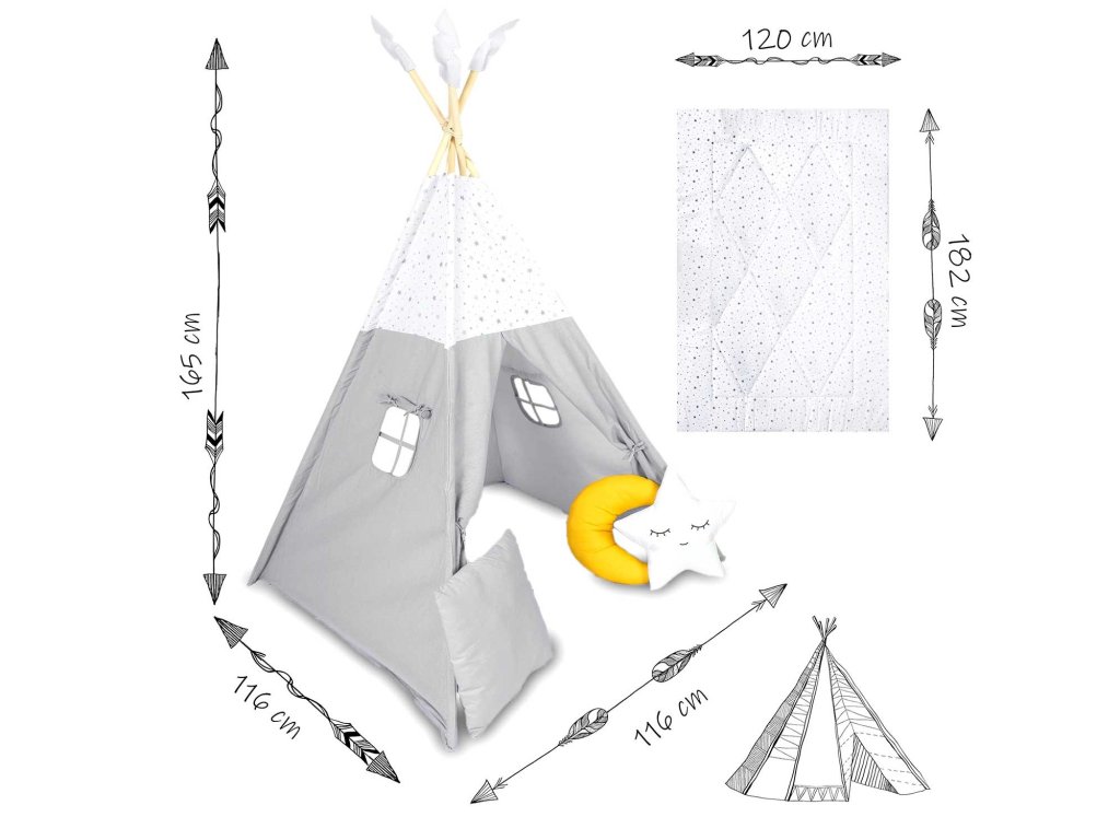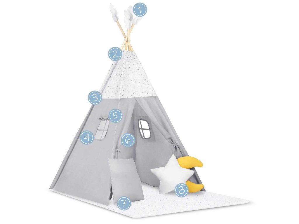 Teepee šotor NK-406 Nukido - svetlo siv