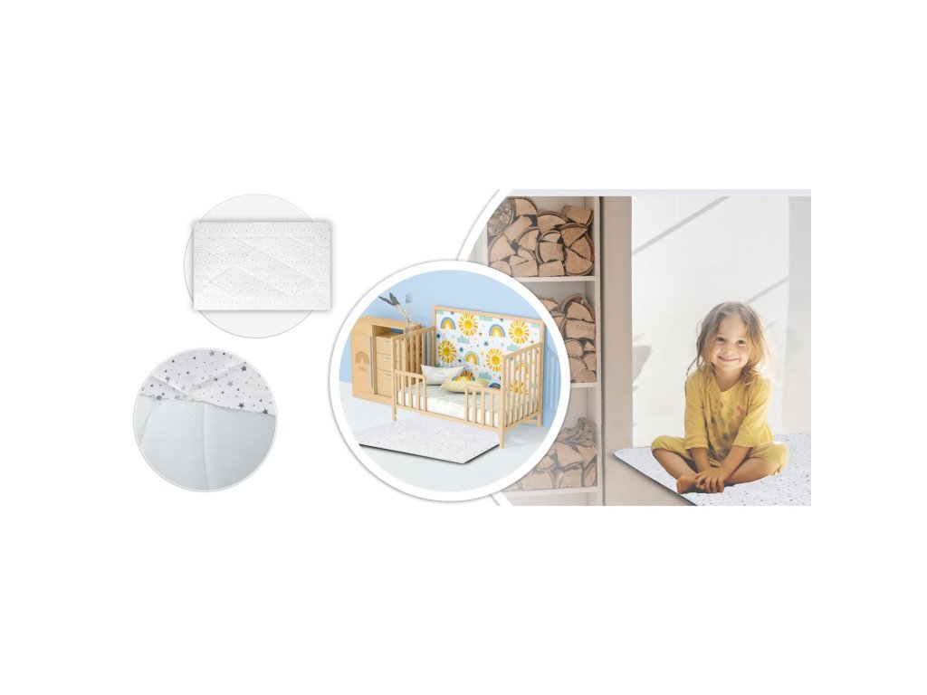- Komplet vsebuje tri blazine in debelo izolacijsko blazino s protizdrsnimi izboklinami.