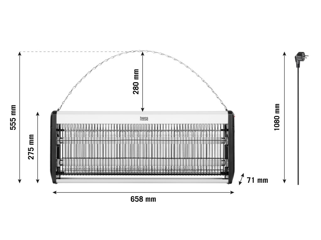 Imate dovolj muh, komarjev in drugega nadležnega insektov Vsekakor poskusite z UV svetilko za insekte Teesa. Ta model je zasnovan z mislijo na najvišjo učinkovitost in je namenjen za prostore z veliko površino – do 150 m2, zato je idealen za skladišča, trgovine ali delavnice.