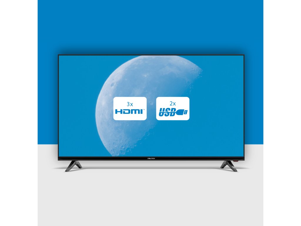 Prenesite se v svet odlične zabave. Televizor Cabletech je opremljen z bogato izbiro vhodov in izhodov (3x HDMI, 2x USB, priključek jack 3,5 mm, kompozitni vhod in Coaxial). Z njimi lahko priključite katero koli napravo na televizor, ki televizor spremeni v središče domače zabave.