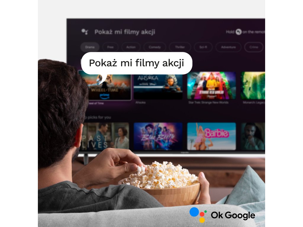Televizor Kruger&Matz KM0255UHD-G bo postal vaš vodič pri iskanju ustreznih vsebin. Pritisnite na daljinskem upravljalniku gumb za glasovno iskanje in vprašajte ali zaprosite za film, ki ga želite gledati, odgovore pa boste prejeli neposredno na zaslonu.