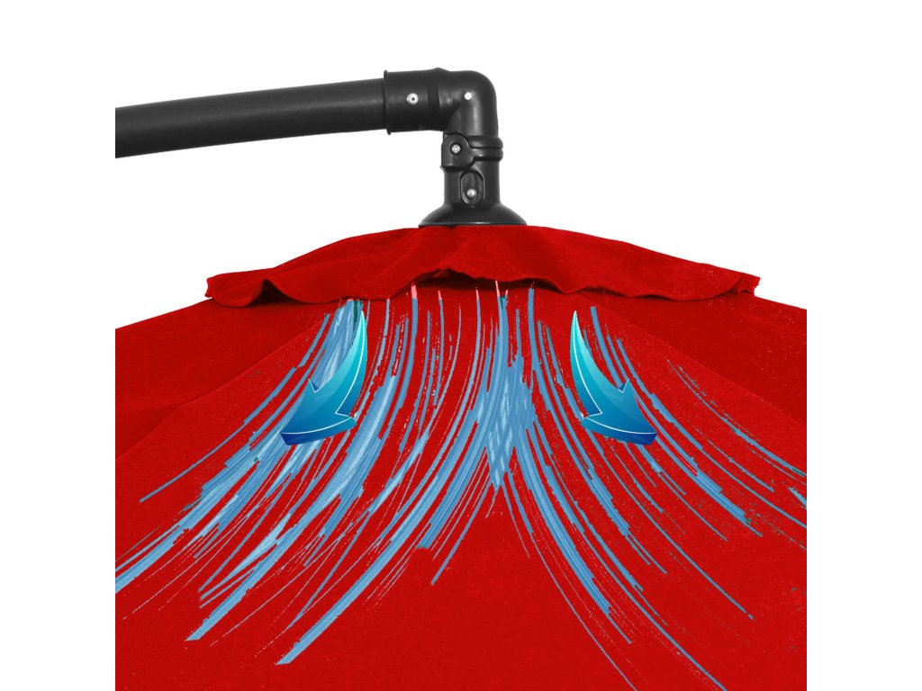 V primeru močnega sunka vetra je priporočljivo zložiti dežnik zaradi velikosti strehe in s tem povezane varnosti.