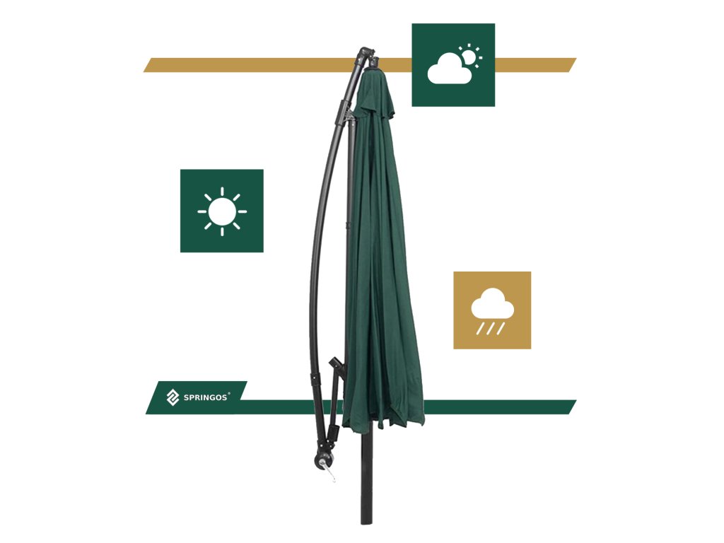 V primeru močnega sunka vetra je priporočljivo zložiti dežnik zaradi velikosti tende in varnosti, povezane s tem.