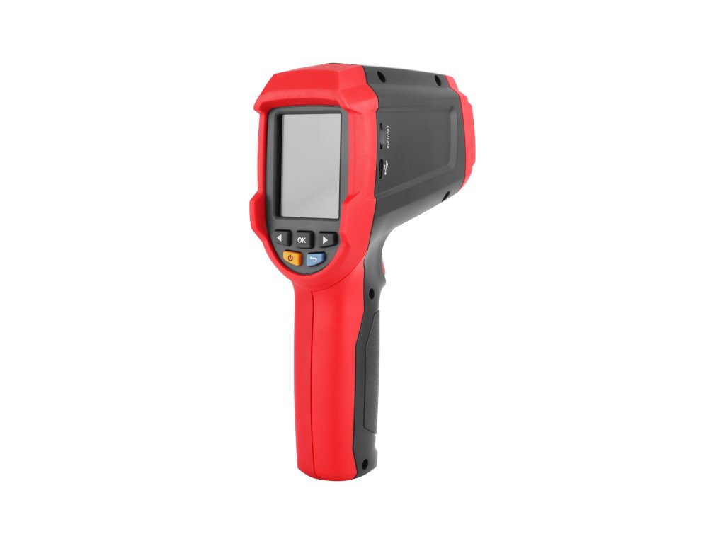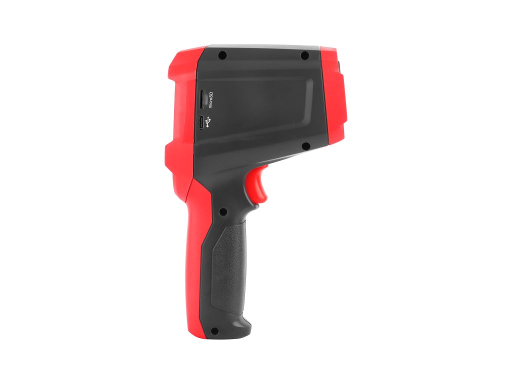 Termovizijska kamera UTi32 se ponaša s trdno zasnovo dimenzij 205 x 124 x 65 mm, kar zagotavlja trajnost in odpornost na intenzivno uporabo. Naprava je napajana s polnilno baterijo 3,7 V / 5000 mAh, ki zagotavlja več kot 7 ur neprekinjenega delovanja, kar je idealno za dolgotrajne preglede. Kamera je opremljena tudi z USB-C vhodom ter režo za kartico microSD, kar omogoča enostaven prenos in shranjevanje podatkov.