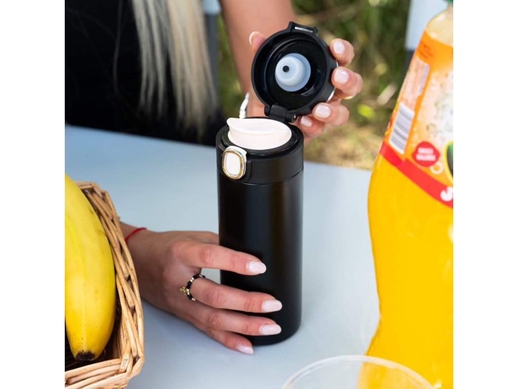 - Tesný uzáver termosky s tlačidlom otvorenia/zatvorenia