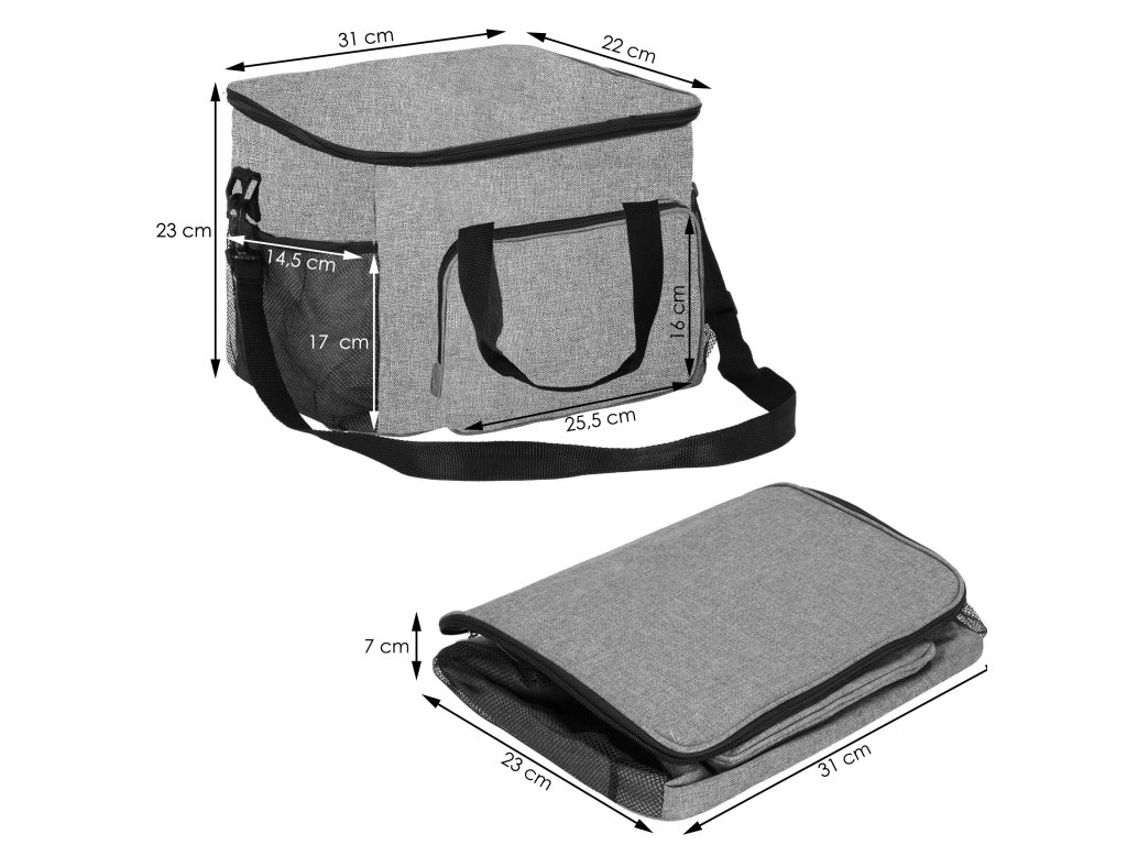 - Veľkosť po zložení: 31 x 23 x 7 cm
