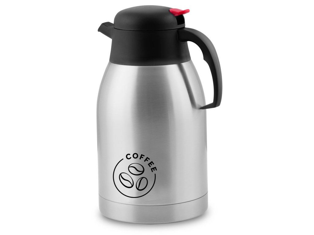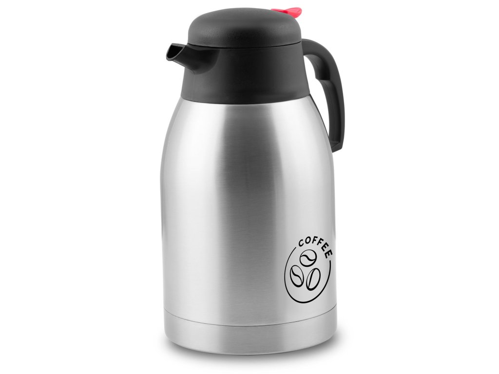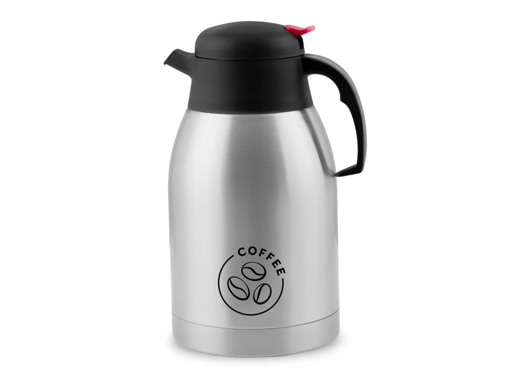 Rdeč gumb na pokrovu omogoča enostavno postrežbo pijač z eno roko.