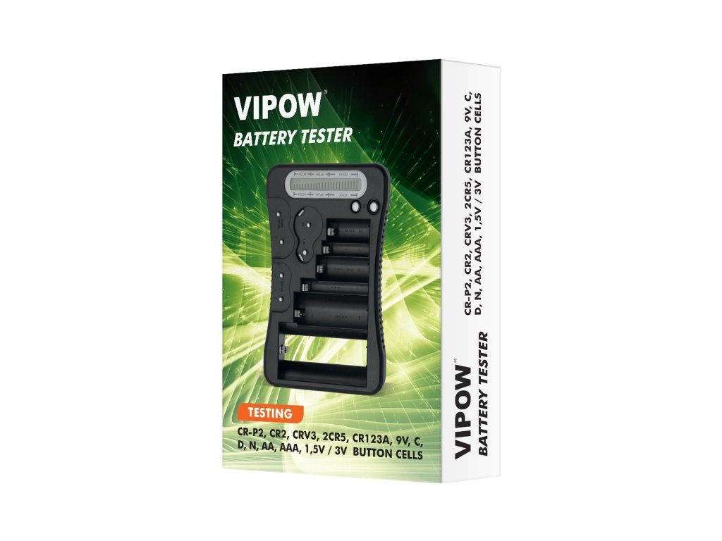 Vrste testiranih baterij: CR2, N, CR123A, AAA, AA/C, D, 6F22, gumbaste baterije (CRV3, 2CR5, CRP2, 1,5 V, 3 V) Zaslon LCD Napajanje: baterija 1,5 V (R03) Delovna temperatura: 0°C – 35°C Temperatura shranjevanja: 0°C – 40°C Vlažnost delovanja: 35% - 95%Vrste testiranih baterij: CR2, N, CR123A, AAA, AA/C, D, 6F22, gumbaste baterije (CRV3, 2CR5, CRP2, 1,5 V, 3 V)