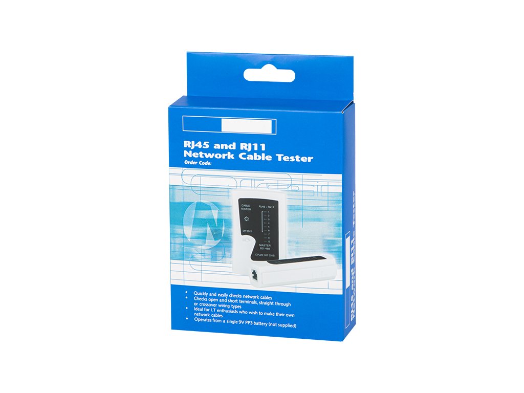 Tester sieťových káblov vám pomôže ušetriť čas pri overovaní párov sieťových káblov, umožňuje odhaliť problémy so skratom alebo nesprávne zapojené páry káblov LAN. Určené na testovanie tienených a netienených krútených párov káblov, ako aj telefónnych, signálnych káblov od dvoch do ôsmich vodičov.