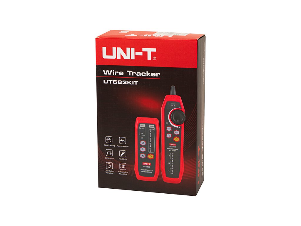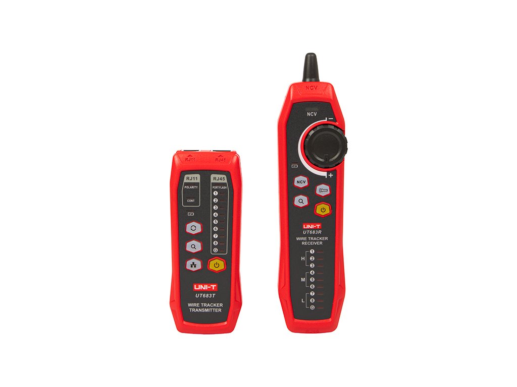 UT683KIT je inteligentni lokator kablov, ki ga sestavljata oddajnik in sprejemnik. Ta komplet je zasnovan z močno odpornostjo proti motnjam. Sprejemnik lahko hitro in natančno locira ciljni kabel. Ta komplet lahko samodejno prepozna odprto vezje, kratek stik, polariteto in hitro prepozna napake kabla.