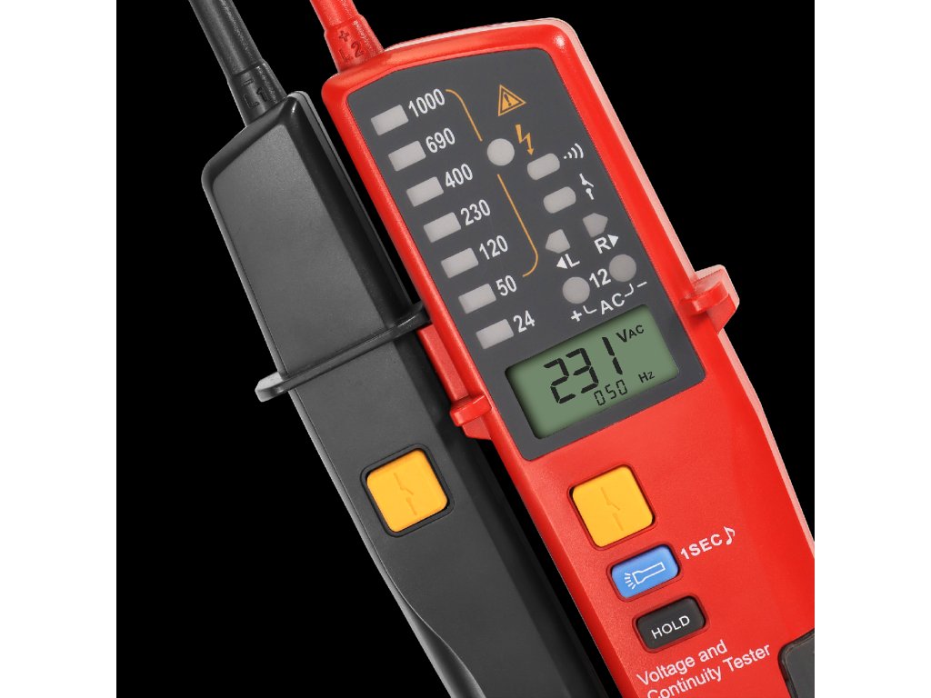 Merilnik UT18E je vsestranski tester napetosti, ki zagotavlja zanesljive meritve tako izmenične kot enosmerne napetosti. Zaradi naprednih funkcij in širokega merilnega območja je idealno orodje za električarje in tehnike, ki se ukvarjajo z diagnostiko električnih inštalacij.