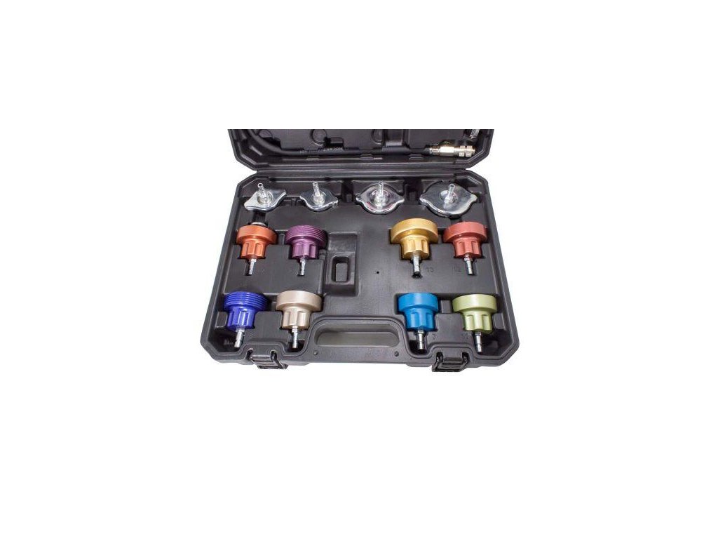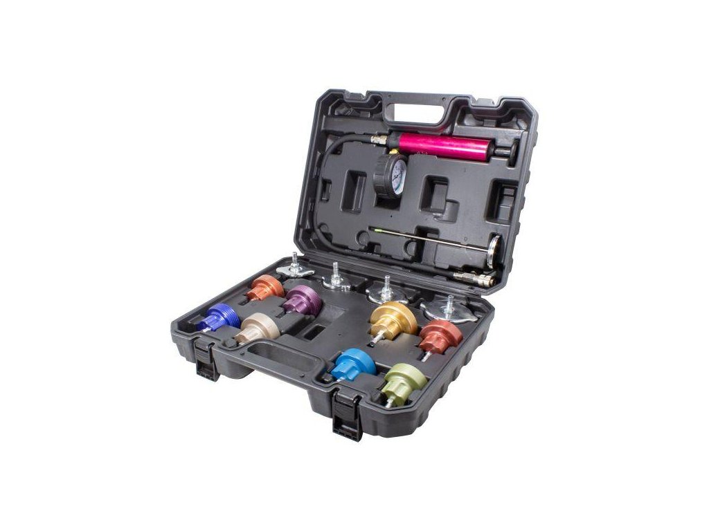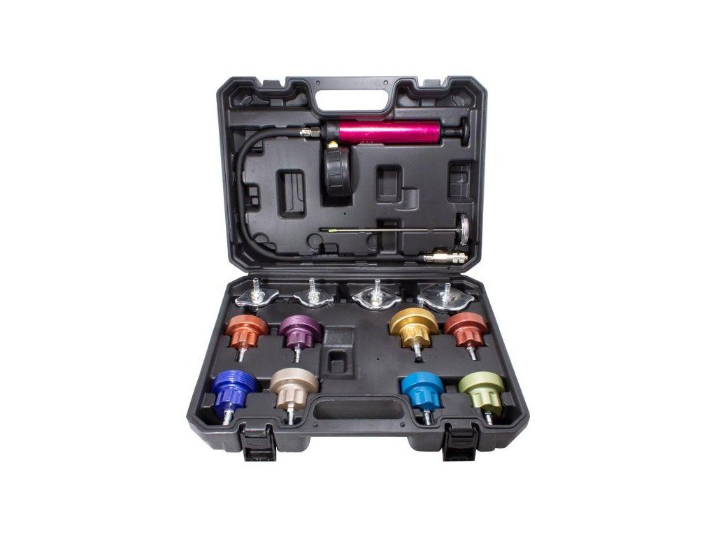 Komplet služi za nadzor in preverjanje tesnosti hladilnega sistema ter grelnika osebnih, dostavnih in tovornih vozil.