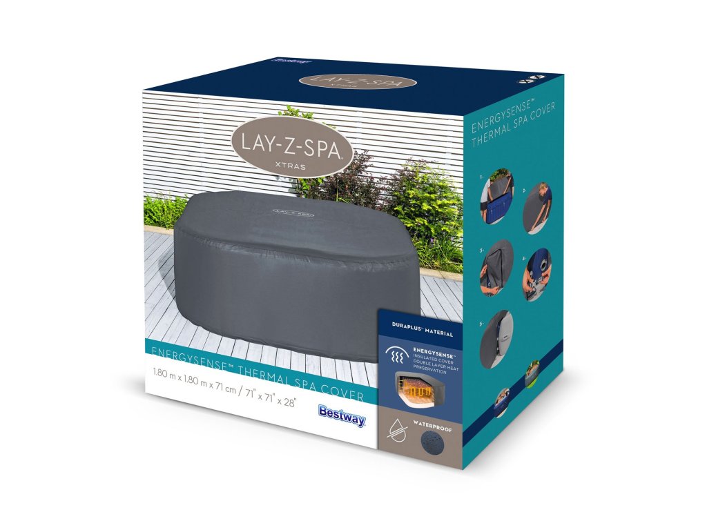 Je trdna pokritost, narejena iz odpornega materiala, zasnovana za SPA z dimenzijami 180 x 180 x 71 cm.