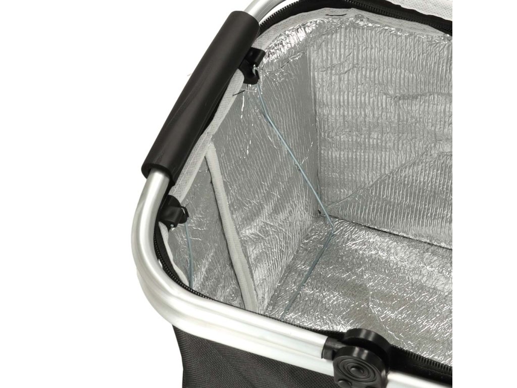 Če iščete prostorno in udobno rešitev, bo piknik košara s prostornino 32 l idealna izbira. Zahvaljujoč kovinskem in aluminijastem okvirju je izjemno trdna, njena zložljiva konstrukcija pa omogoča preprosto shranjevanje in transport. Piknik košara z dvojnimi zadrgami omogoča hiter in enostaven dostop do notranjosti, njena toplotna plast pa pomaga ohranjati optimalno temperaturo izdelkov.