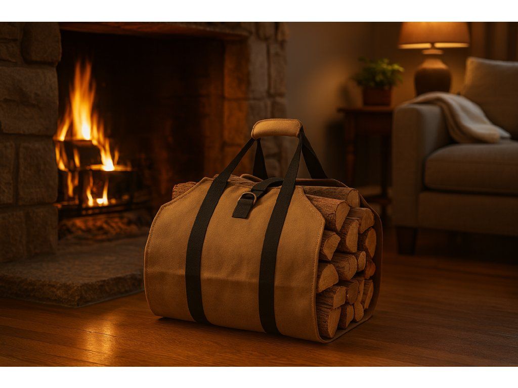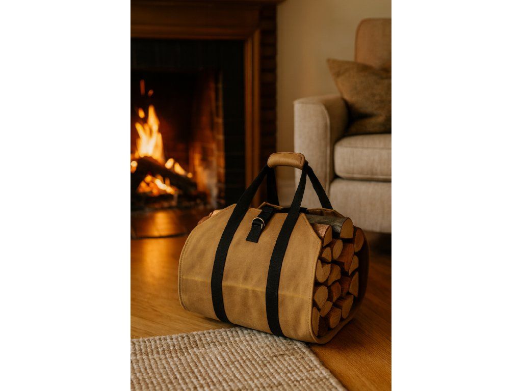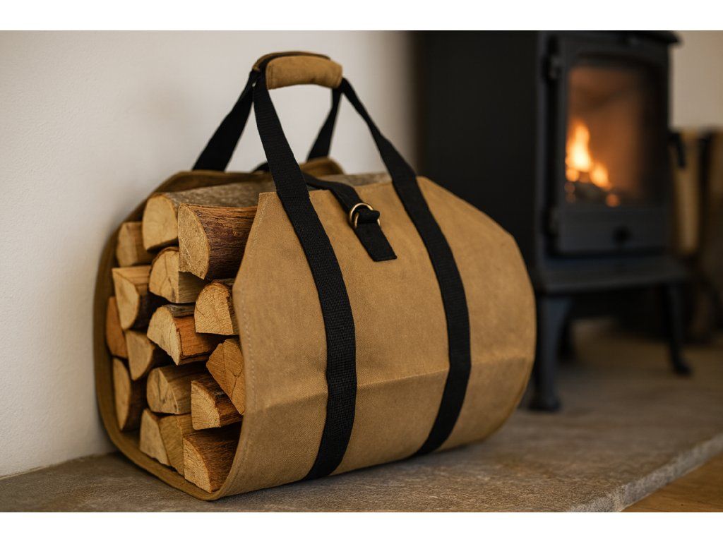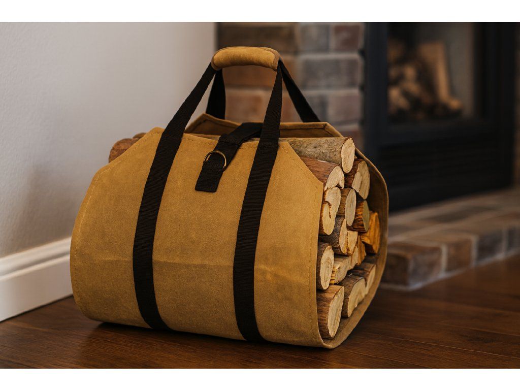 Torba za kaminsko leso je praktična rešitev za shranjevanje lesa. Narejena iz voskane platnenine, nudi odpornost proti vlagi in dolgo življenjsko dobo med uporabo.