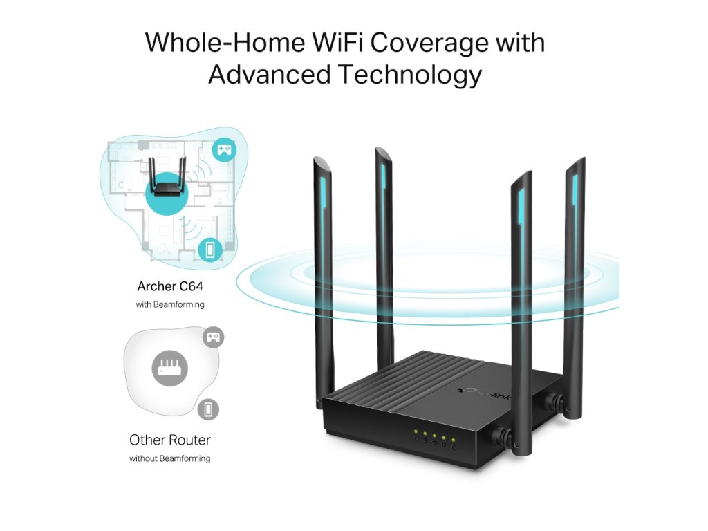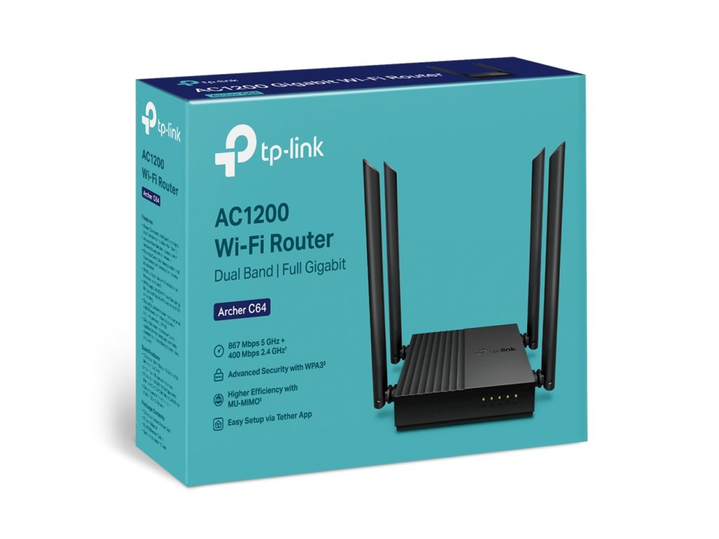 TP-LINK USMERJEVALNIK AC1200 Archer C64, brezžični, dvopasovni, 400/867Mb/s
