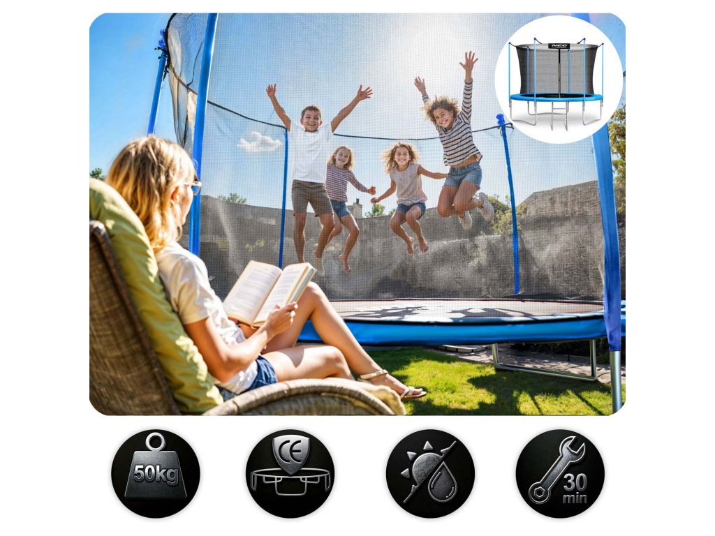 - set vsebuje: vrtno trampolino, varnostno mrežo, kovinske lestve, navodila za uporabo