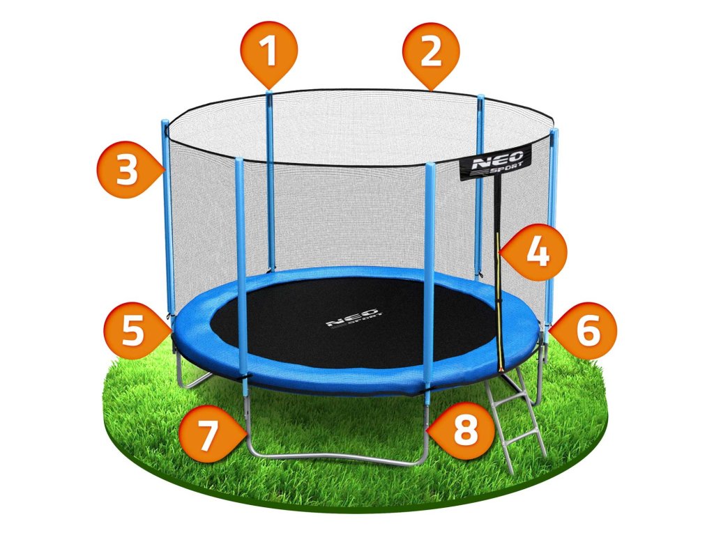 - Vsebina paketa: vrtna trampolina, varnostna mreža, kovinska lestev, navodila za uporabo