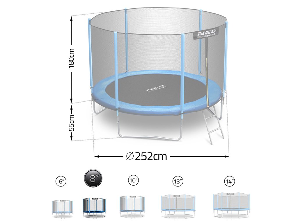Trampolin 252cm z zunanjo mrežo in lestev Neo-Sport