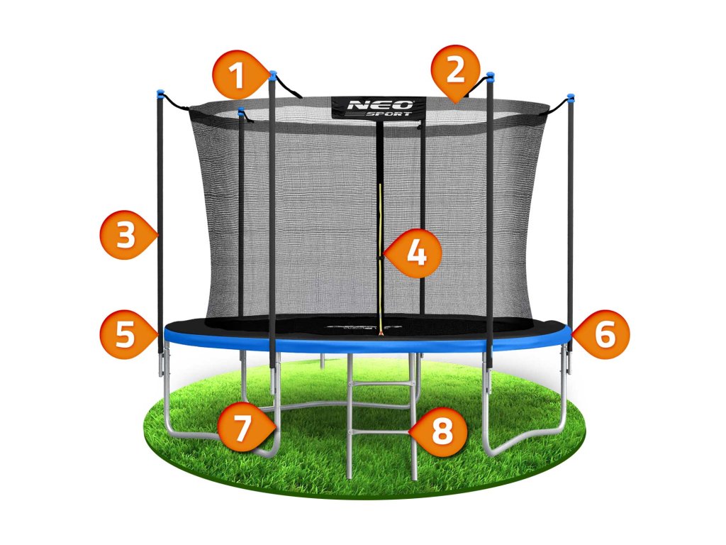 - komplet vsebuje: vrtno trampolino, varnostno mrežo, kovinsko lestev, navodila za uporabo