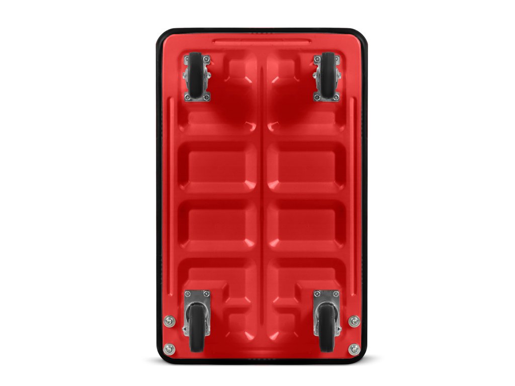 - Voziček ima 2 popolnoma vrtljivi gumijasti kolesi s kovinsko ojačitvijo, kar omogoča gladko in natančno manevriranje z njim.