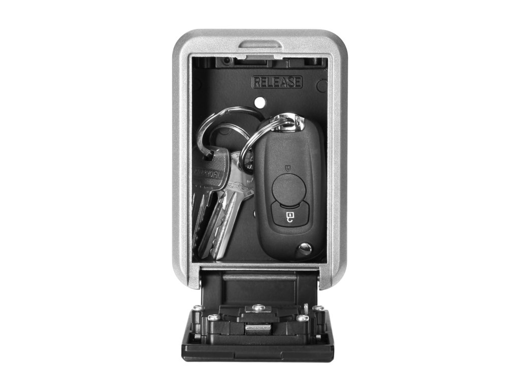Kompaktni sef za ključe, primeren za montažo na steno v notranjosti in zunaj. Ta sef je odlična rešitev, kadar želite ključe shraniti na varno mesto. Štirimestna ključavnica ponuja 10.000 možnih kombinacij kode, uporabljen mehanizem pa preprečuje poskuse vloma v sprednjo ploščo. Uporabljeni materiali zagotavljajo dolgotrajno odpornost izdelka na vremenske vplive. Montažni vijaki so priloženi.Tehnične specifikacije