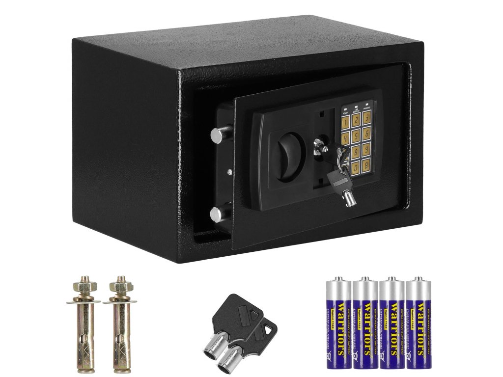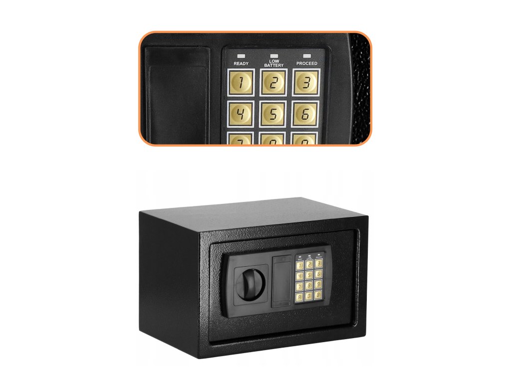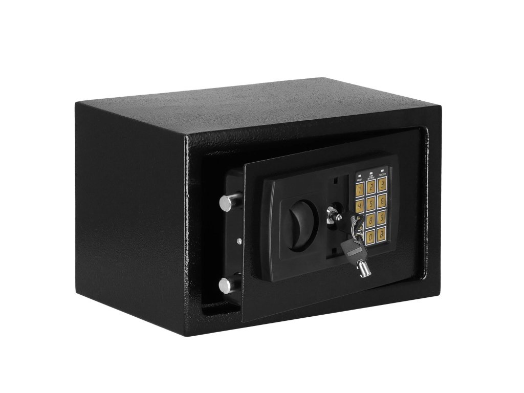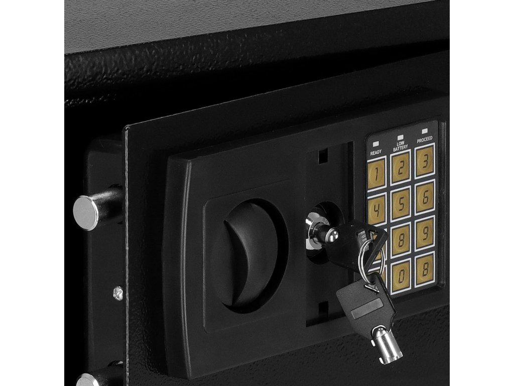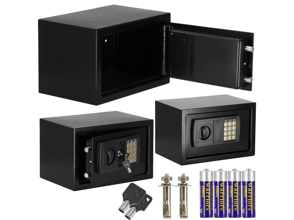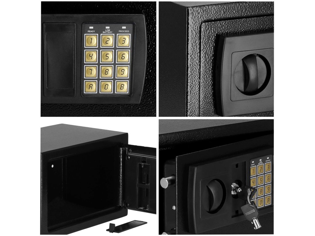 - Dodatno: možnost montaže na stene, tla in omare (vijaki vključeni), podloga iz klobučevine, ki utiša notranjost sefa