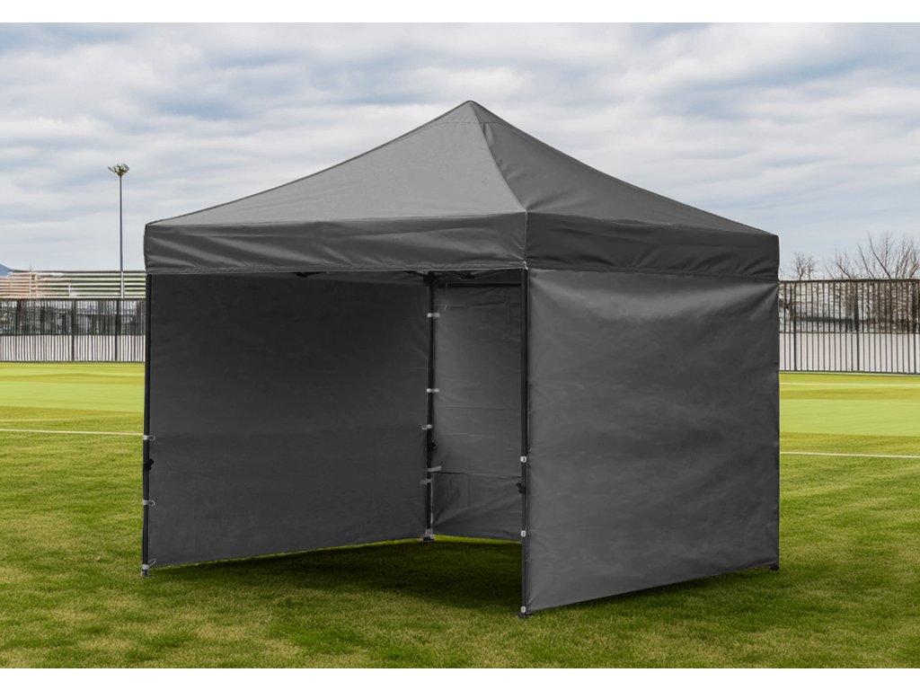 Zaščita pred prekomernim soncem in dežjem je zagotovljena. Tri stene ščitijo pred močnim vetrom. Šotor je idealen za žar, zunanje prireditve in piknike v vrtu. Lahko služi tudi kot skladišče po namestitvi vrat z zadrgo, ki so na voljo v ponudbi. Odlično služi tudi kot trgovski šotor.