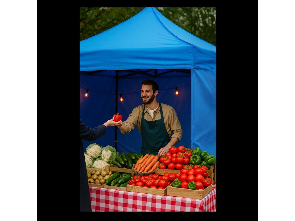 Zaščita pred prekomerno sončno svetlobo in dežjem je zagotovljena. Tri stene ščitijo pred močnim vetrom. Šotor je odličen za peko na žaru, zunanje dogodke in piknike v vrtu. Lahko služi tudi kot skladišče po namestitvi vrat z zadrgo, ki so na voljo v ponudbi. Prav tako dobro služi kot trgovski šotor.