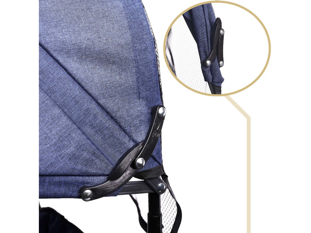 Na zadnji del baldahina je bila pritrjena mreža. Tako lahko vidite sedež in vse, kar je pri drugih modelih pokrito s polno strehico.