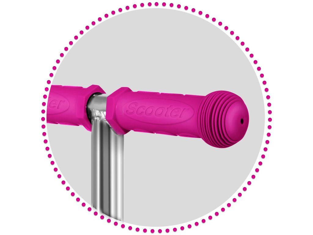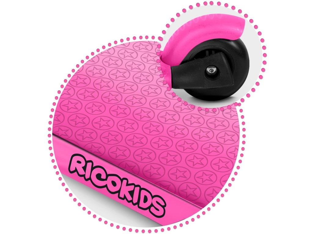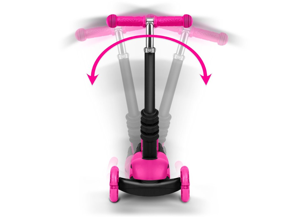 Upravljanje poteka le z nagibanjem skiroja, brez obračanja krmila. Samo rahlo se nagnite v želeno smer – in to je to! Otrok hitro obvlada to tehniko vožnje in hkrati uriva svoj občutek za ravnotežje. Skiro pri zavijanju ostaja stabilen v vertikalnem položaju zaradi treh koles.