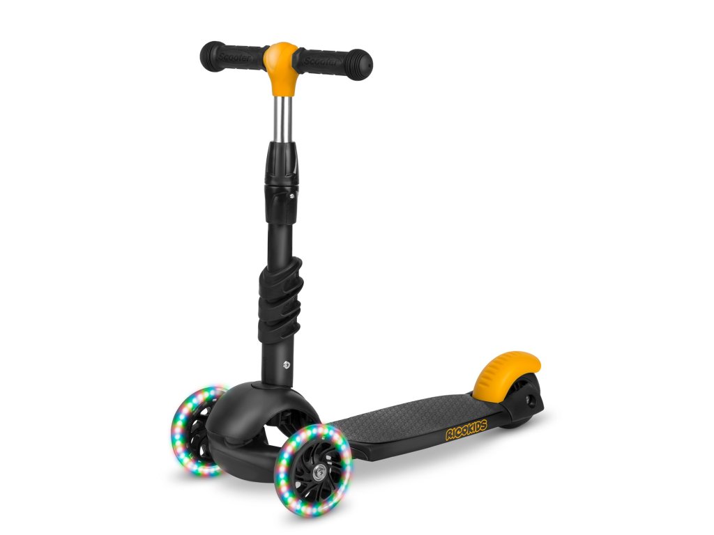 - super zabava! Trokolesni skiro ima vgrajeno dinamom - zahvaljujoč temu se kolesa med vožnjo razsvetlijo!