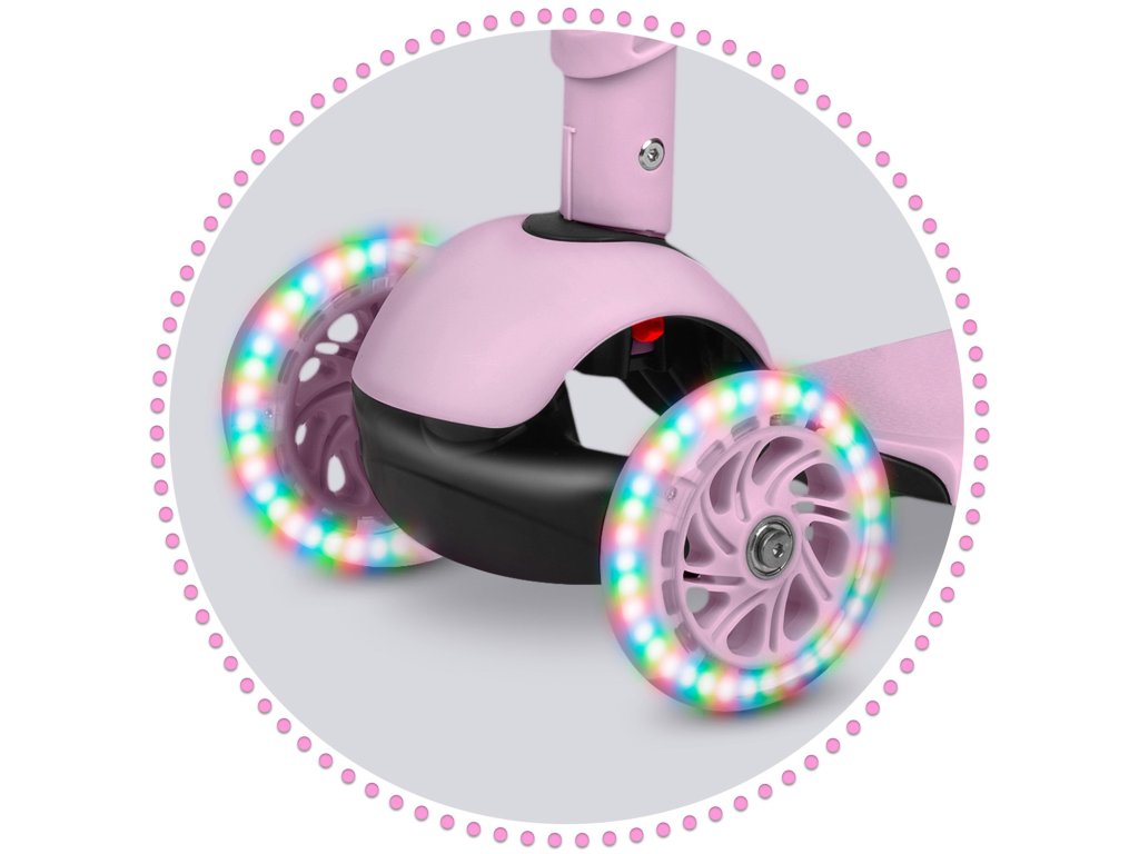- odlična zabava! Skiro ima vgrajen dinamo - zahvaljujoč kateremu se kolesa med vožnjo zasvetijo!
