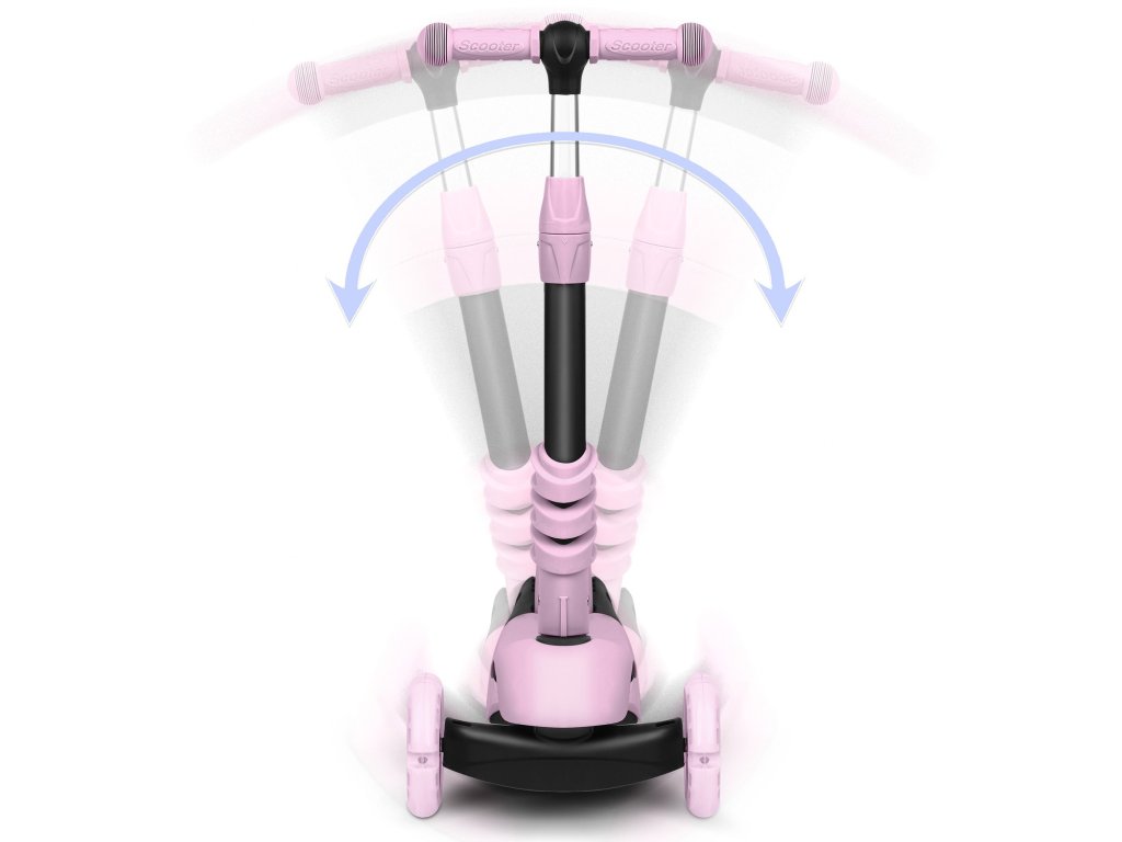 Upravljanje poteka le z ravnotežjem karoserije, brez obračanja volana. Dovolj je, da se rahlo nagnemo v želeno smer – in to je to! Otrok hitro osvoji to tehniko vožnje in hkrati uri smisel za ravnotežje. Skiro pri obračanju ostaja stabilen v navpičnem položaju zahvaljujoč trem kolesom.