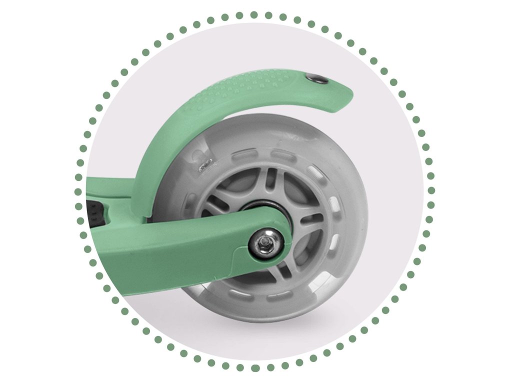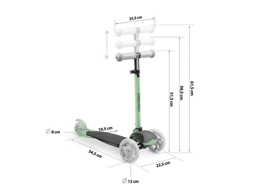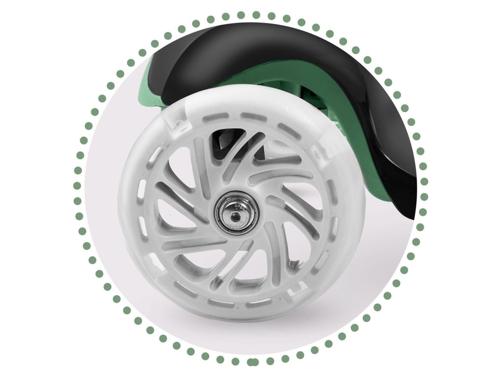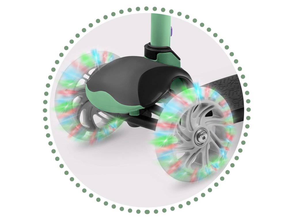 - odlična zabava! Trikolesni skiro ima vgrajeno dinamo - zahvaljujoč temu kolesa med vožnjo zasvetijo!