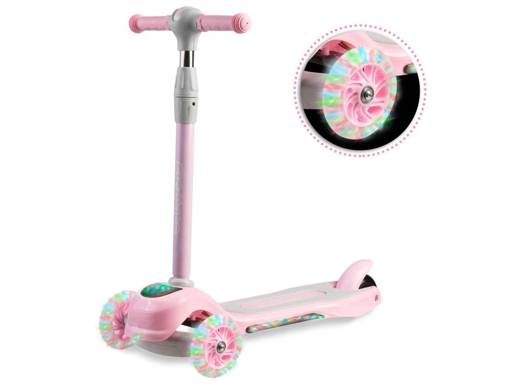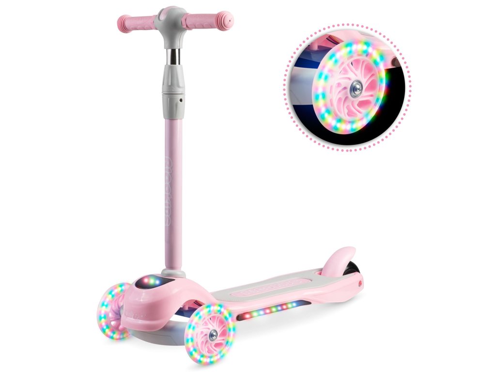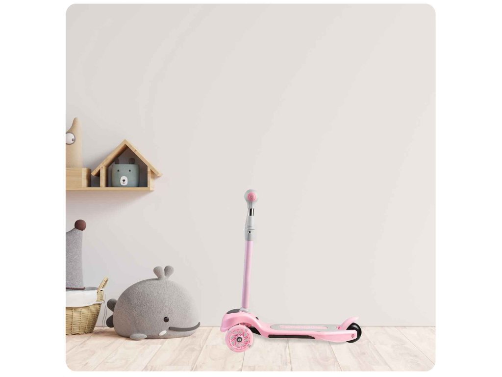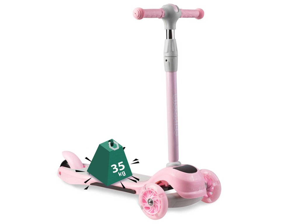 Ta skiro vam omogoča, da ga upravljate z uravnoteženjem telesa brez potrebe po vrtenju volana. Samo nagnite se v želeno smer – in to je to. Otrok si lahko hitro priuči te tehnike vožnje, hkrati pa si izboljšuje občutek za ravnovesje. Varnejši je tudi za manjše otroke - skiro se sam drži stabilno pokonci, zahvaljujoč trem kolesom.