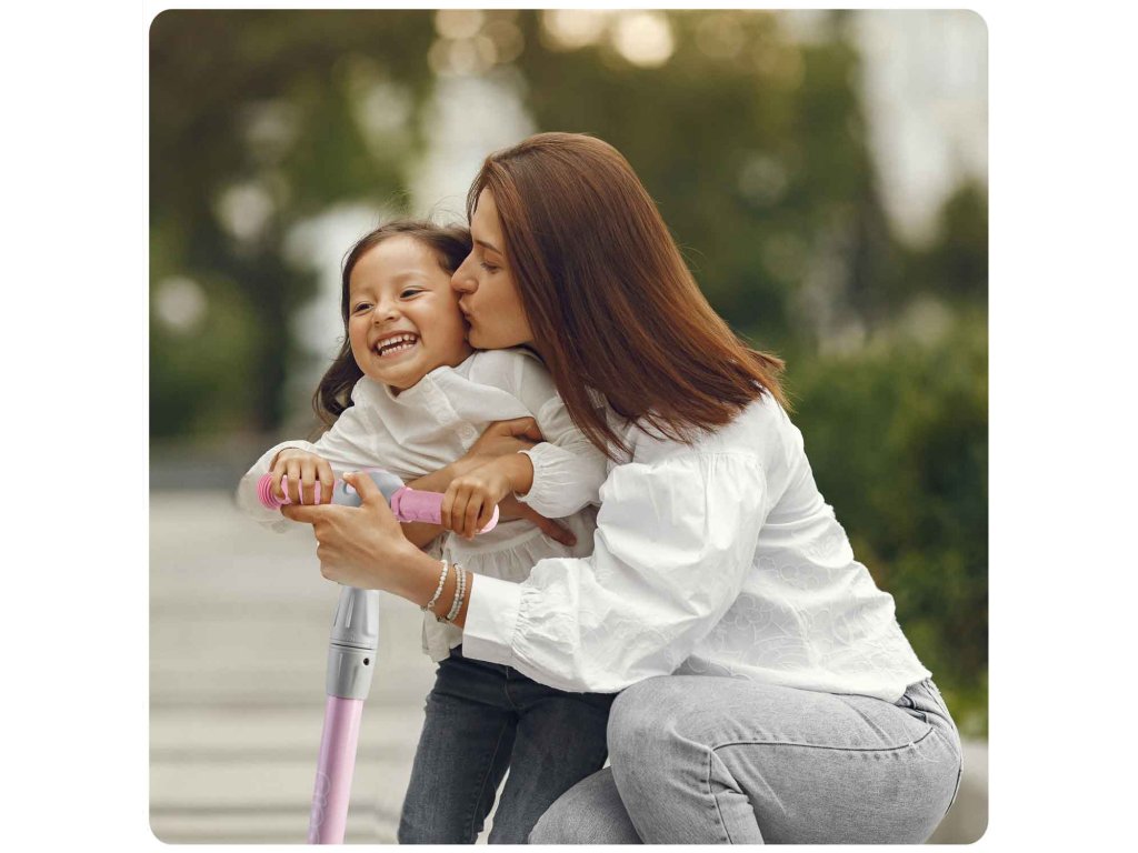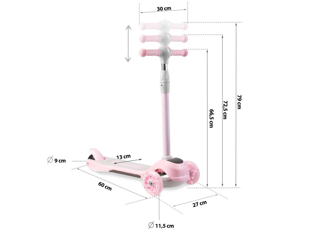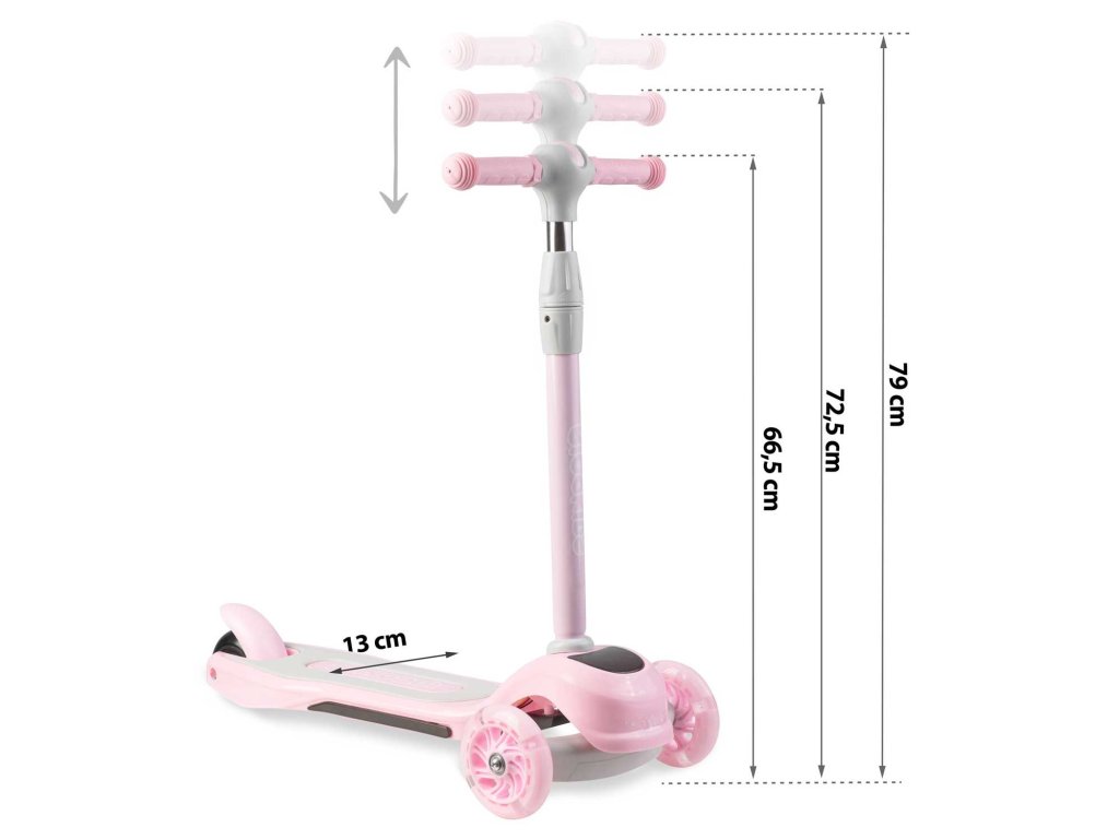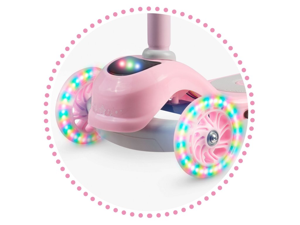 Ta skiro vam omogoča, da ga upravljate z uravnoteženjem telesa brez potrebe po vrtenju volana. Samo nagnite se v želeno smer – in to je to. Otrok si lahko hitro priuči te tehnike vožnje, hkrati pa si izboljšuje občutek za ravnovesje. Varnejši je tudi za manjše otroke - skiro se sam drži stabilno pokonci, zahvaljujoč trem kolesom.