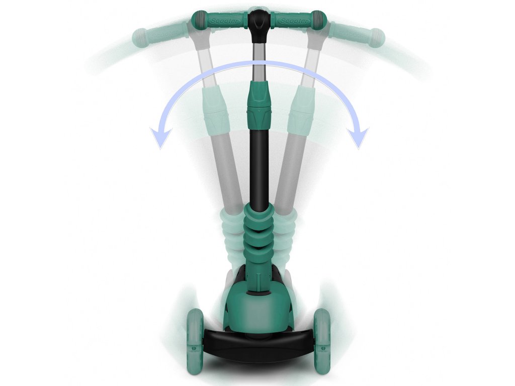 Upravljanje poteka izključno s pomočjo ravnotežja telesa, brez obračanja krmila. Dovolj je, da se rahlo nagnete na želeno stran in končano! Otrok hitro obvlada to tehniko vožnje in ob tem vadi svoj občutek za ravnotežje. Skiro pri zavijanju stabilno ohranja vertikalni položaj zahvaljujoč trem kolesom.