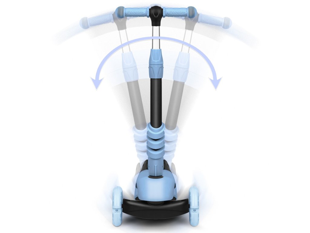 Vodenje poteka samo z ravnotežjem, brez obračanja krmila. Dovolj je, da se rahlo nagnemo v želeno smer – in to je to! Otrok hitro osvoji to tehniko vožnje in s tem jača občutek za ravnotežje. Skiro med obračanjem ostaja stabilen v navpičnem položaju zaradi treh koles.