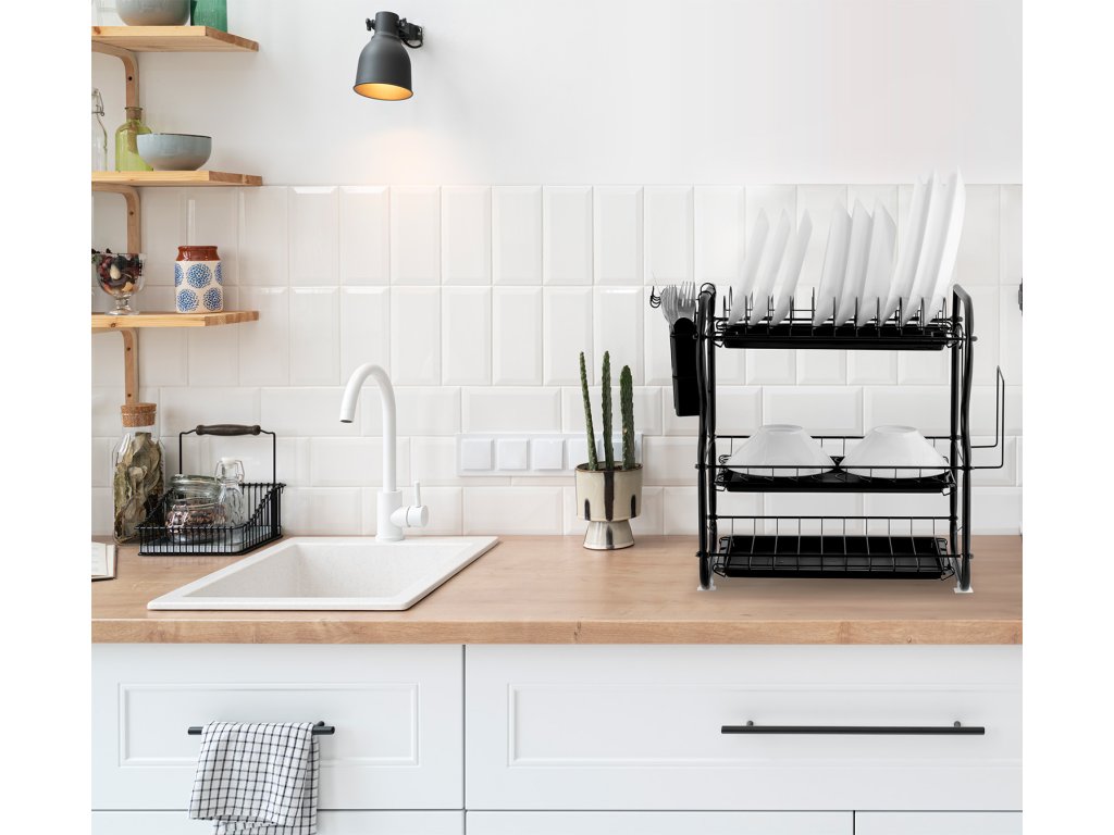 - Praktični izvlečni pladnji pod odcejalnikom — ne ščitijo le pulta, ampak tudi olajšajo vzdrževanje.