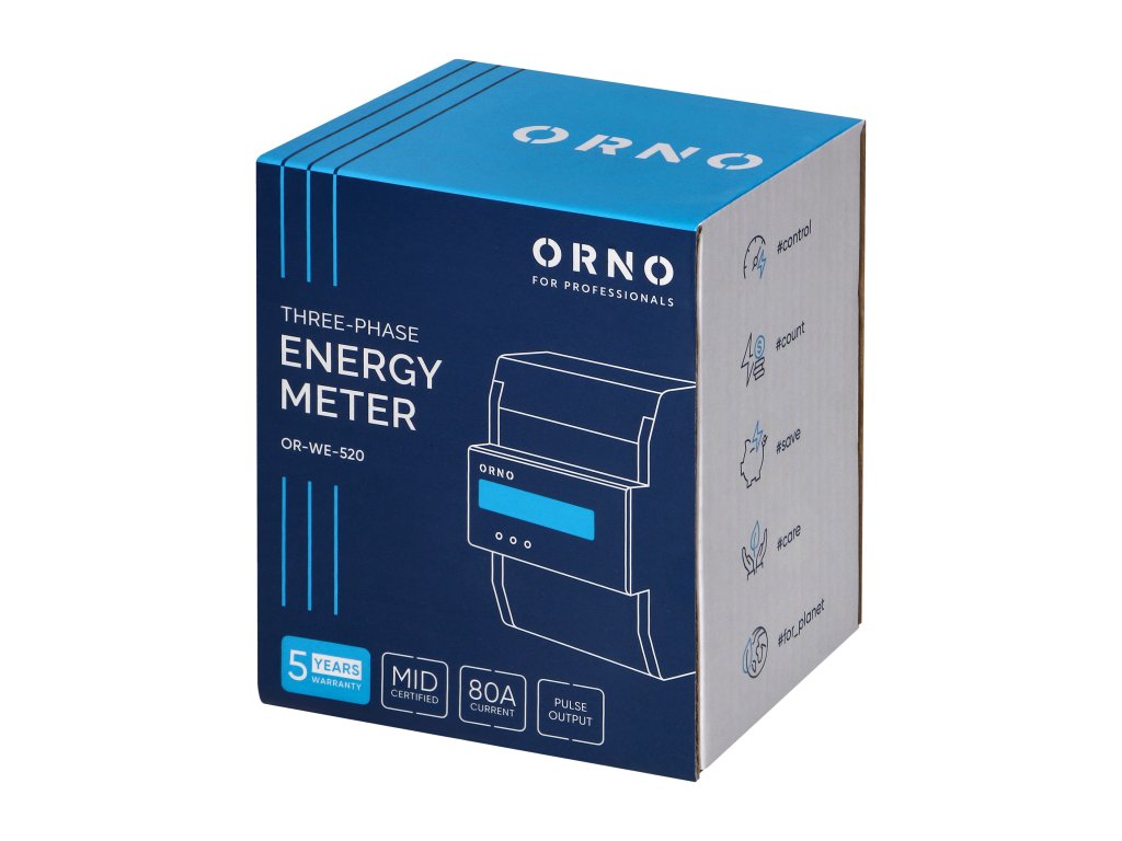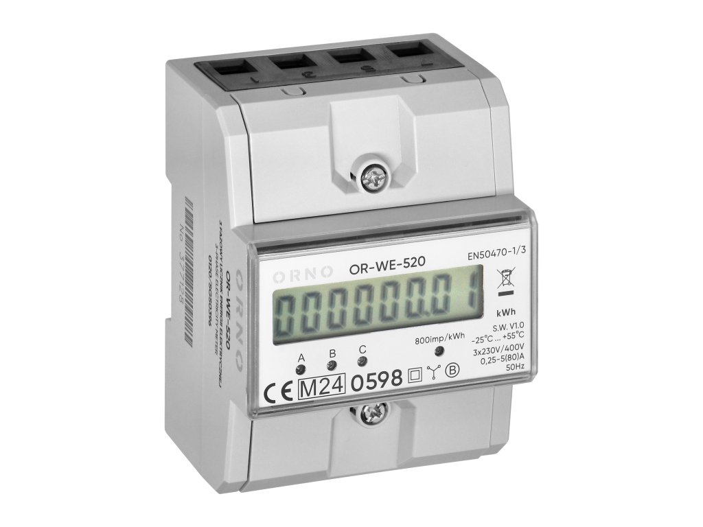 3-fazni merilnik električne energije, 80A, Napajanje: 230V ~, 50Hz, osnovni tok: 5A, maks. elektrika: 80A, min. tok: 0,25A, impulzna frekvenca: 800 imp / kW