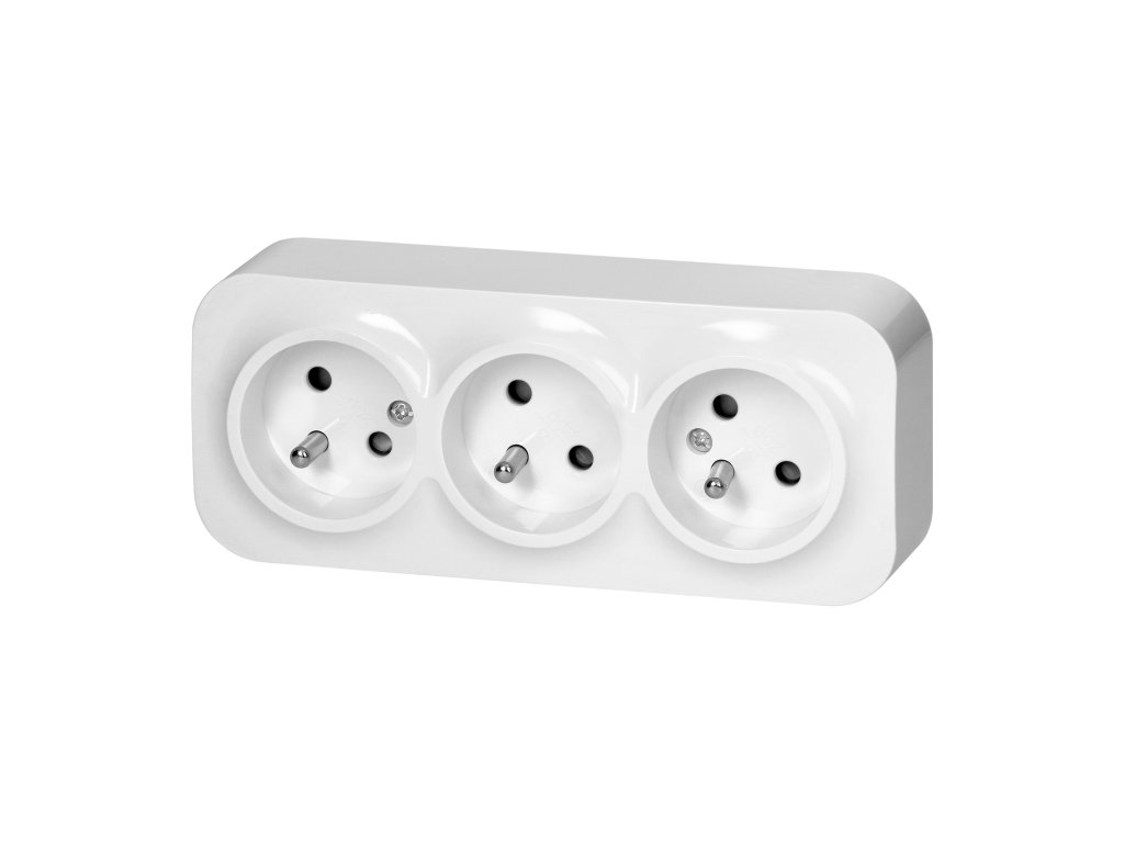 Trojna stenska vtičnica 16A, bela, 10 kosov