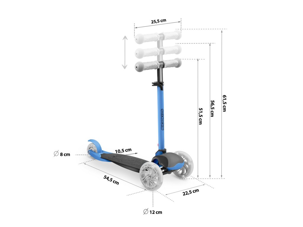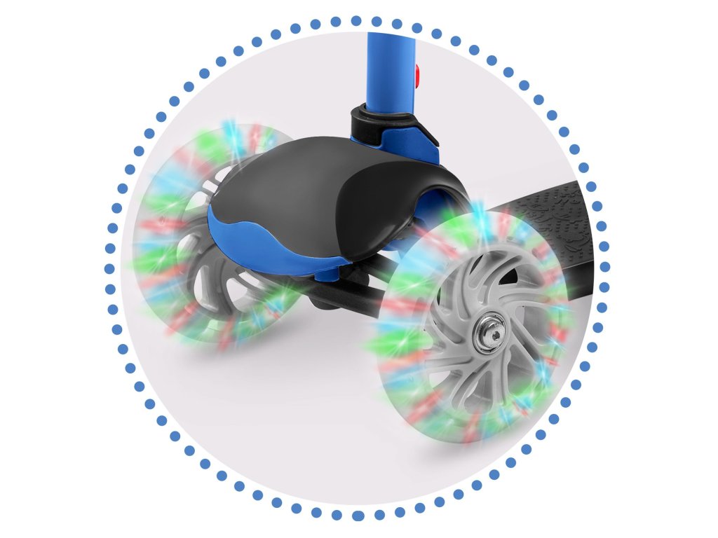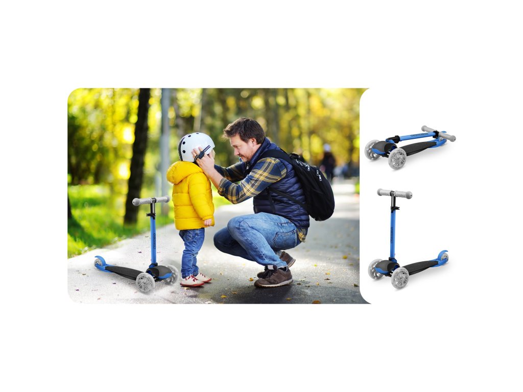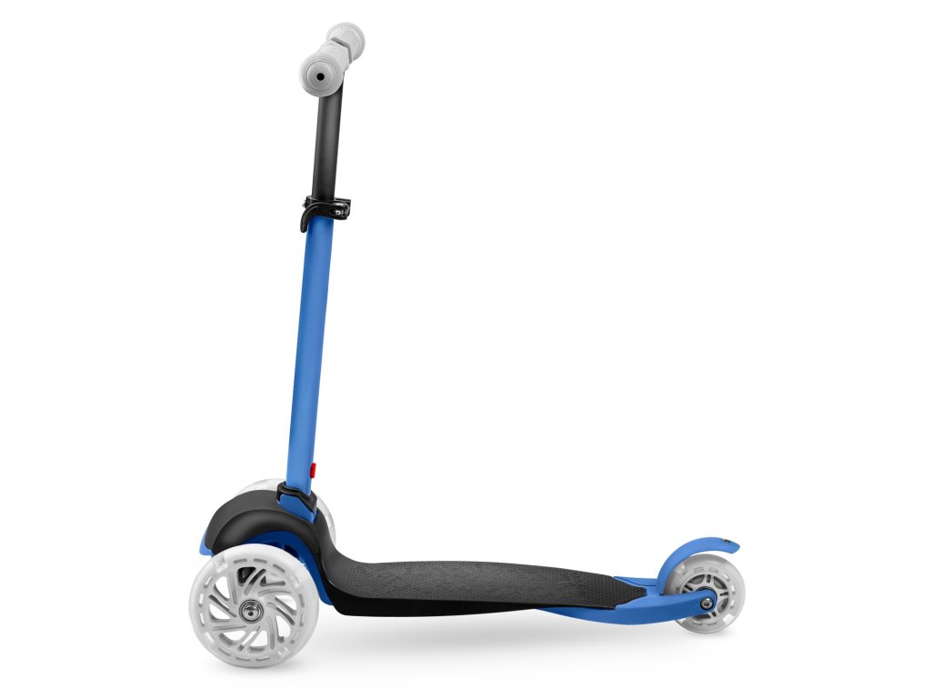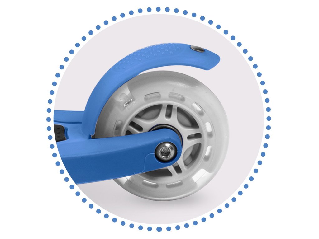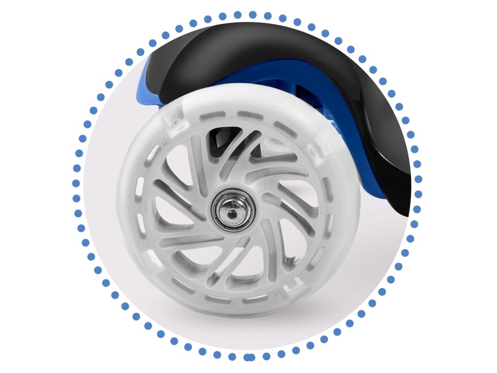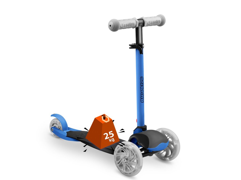 Ta skiro vam omogoča, da ga upravljate ravnotežno brez obračanja krmila. Samo nagnite se v želeno smer – in to je to. Otrok lahko hitro osvoji to tehniko vožnje in hkrati izboljšuje občutek za ravnotežje. Je tudi varnejša oprema za manjše otroke – sam skiro je zaradi treh koles stabilen v navpičnem položaju.