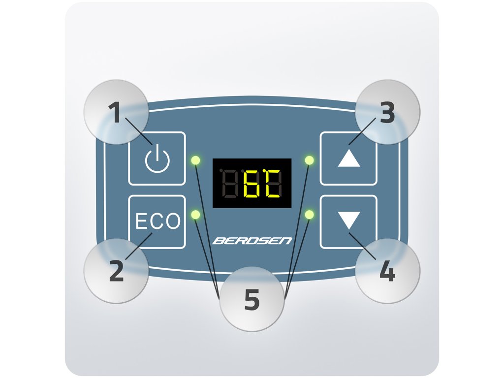 - Način Eco se aktivira po dosezi nastavljene temperature, kar zmanjša porabo toka. Ko temperatura naraste, se naprava samodejno preklopi nazaj na način Normalni.
