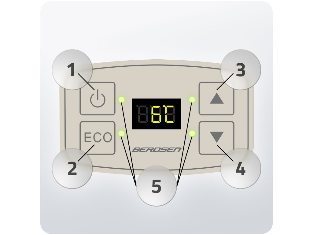 - Eko način se aktivira, ko je dosežena nastavljena temperatura, s čimer se zmanjša poraba toka. Ko temperatura naraste, se naprava samodejno vrne v način Normalno.