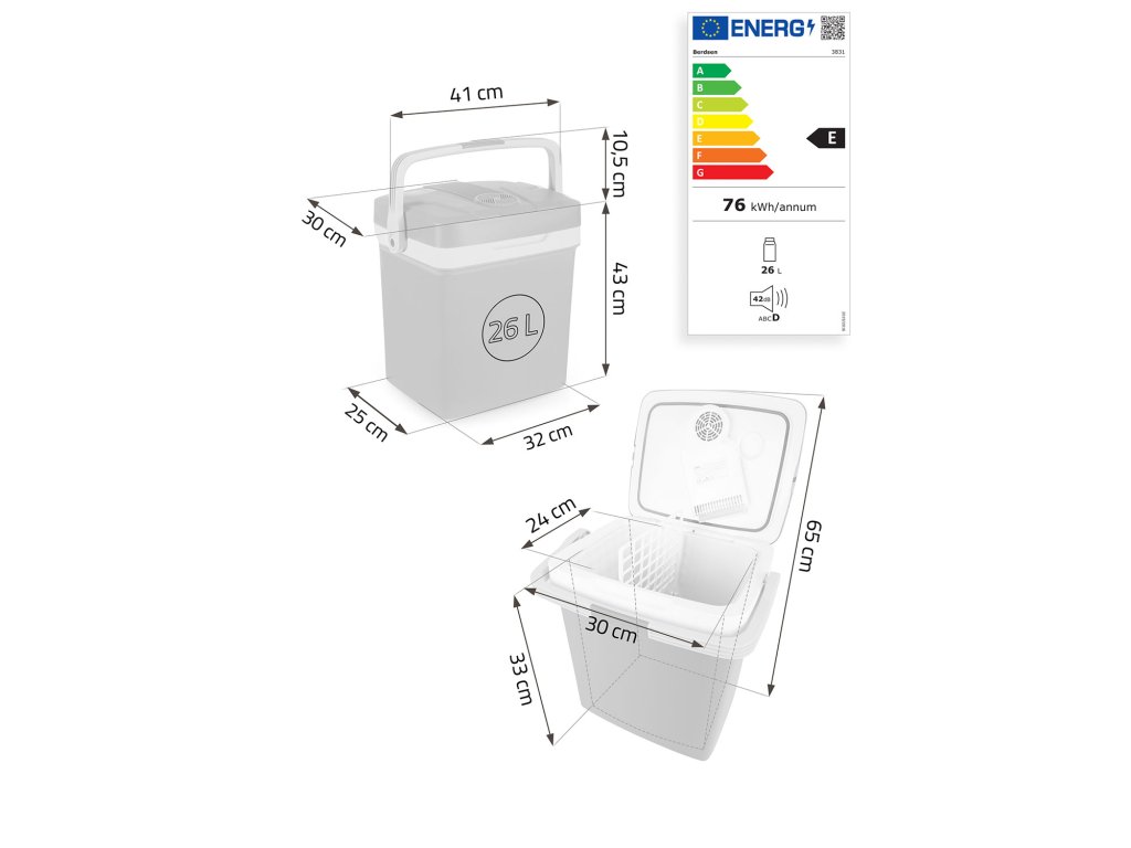 - Hladilnik se izkaže med kratkim izletom na morje ali dolgim izletom — ima do 26 litrov. Zaradi tako velike prostornine lahko vanj spravite vse, kar potrebujete zase in za svoje bližnje.